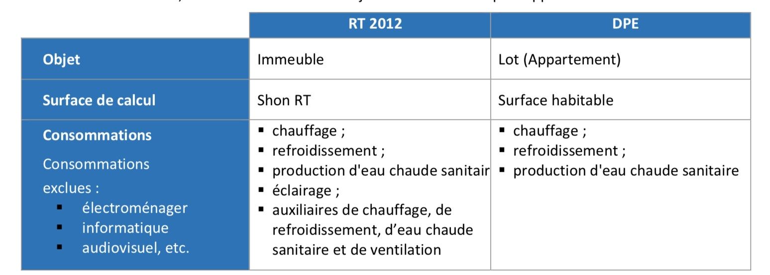 Attention ! Les surfaces, les consommations et l’objet du DPE diffèrent par rapport à la RT 2012.
