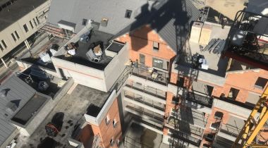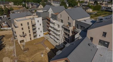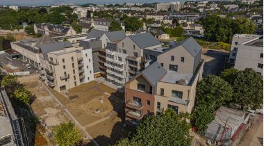 Nous avons composé cette résidence tel un îlot ouvert sur un grand jardin exposé sud, planté de grands arbres en pleine terre. L’ensemble est composé de volumes bâtis à l’échelle d’immeubles urbains avec des toitures habitées ouvrant de larges vues vers le paysage environnant. Les appartements présentent une grande diversité d’agencement et de typologies offrant à ses habitants un cadre de vie et un paysage de qualité. Les matériaux et textures sont choisis dans des palettes variées, en harmonie avec le projet paysager.
