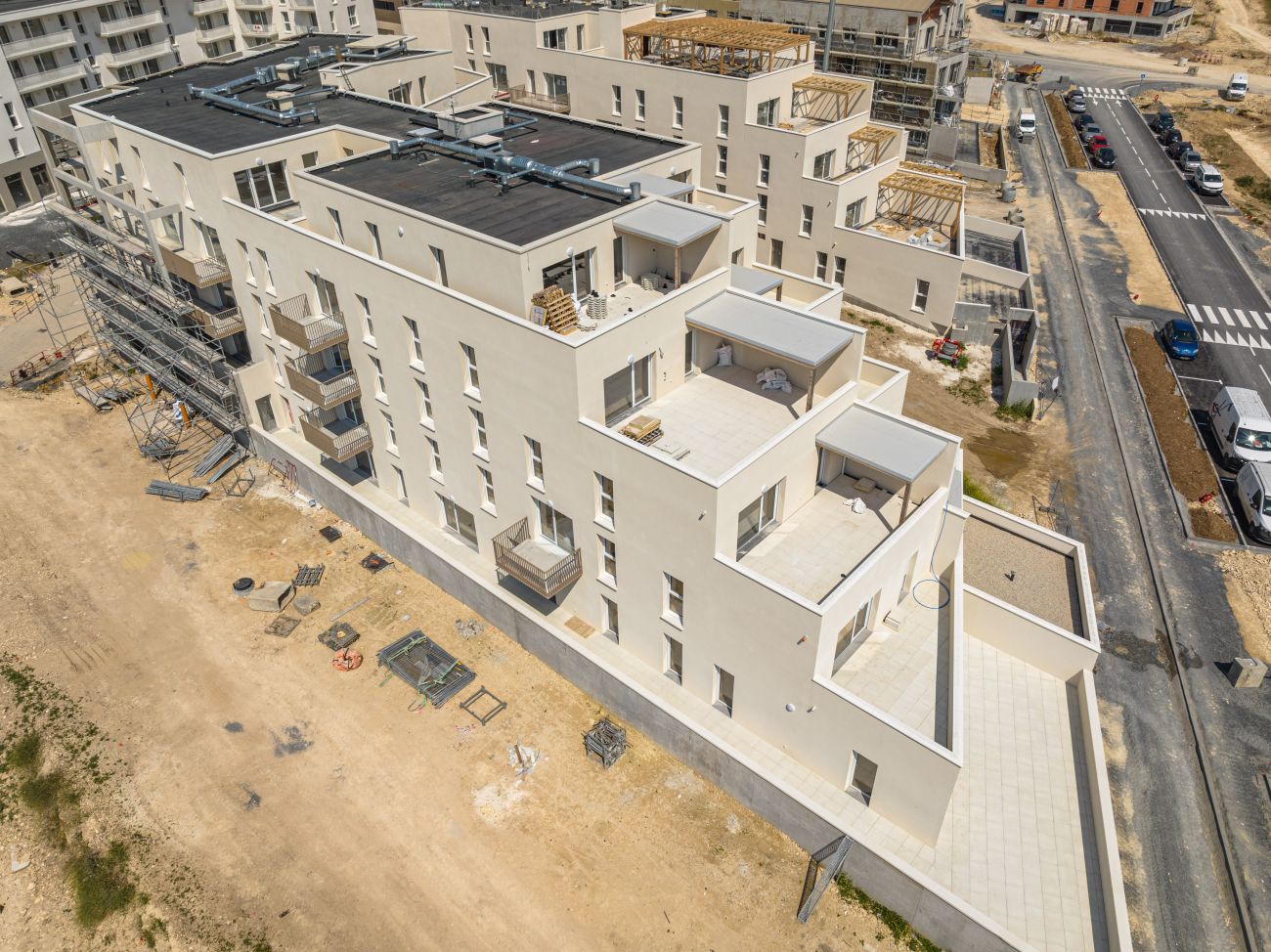 Les rez-de-chaussée bénéficient de beaux jardins privatifs, les étages de vastes terrasses et enfin des rooftop avec des pergolas aux lignes contemporaines pour les derniers étages.